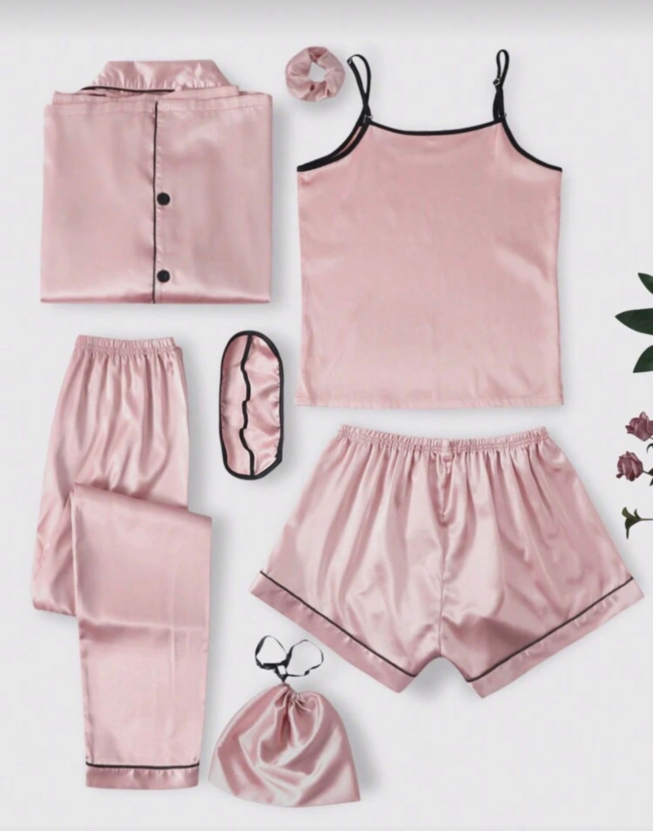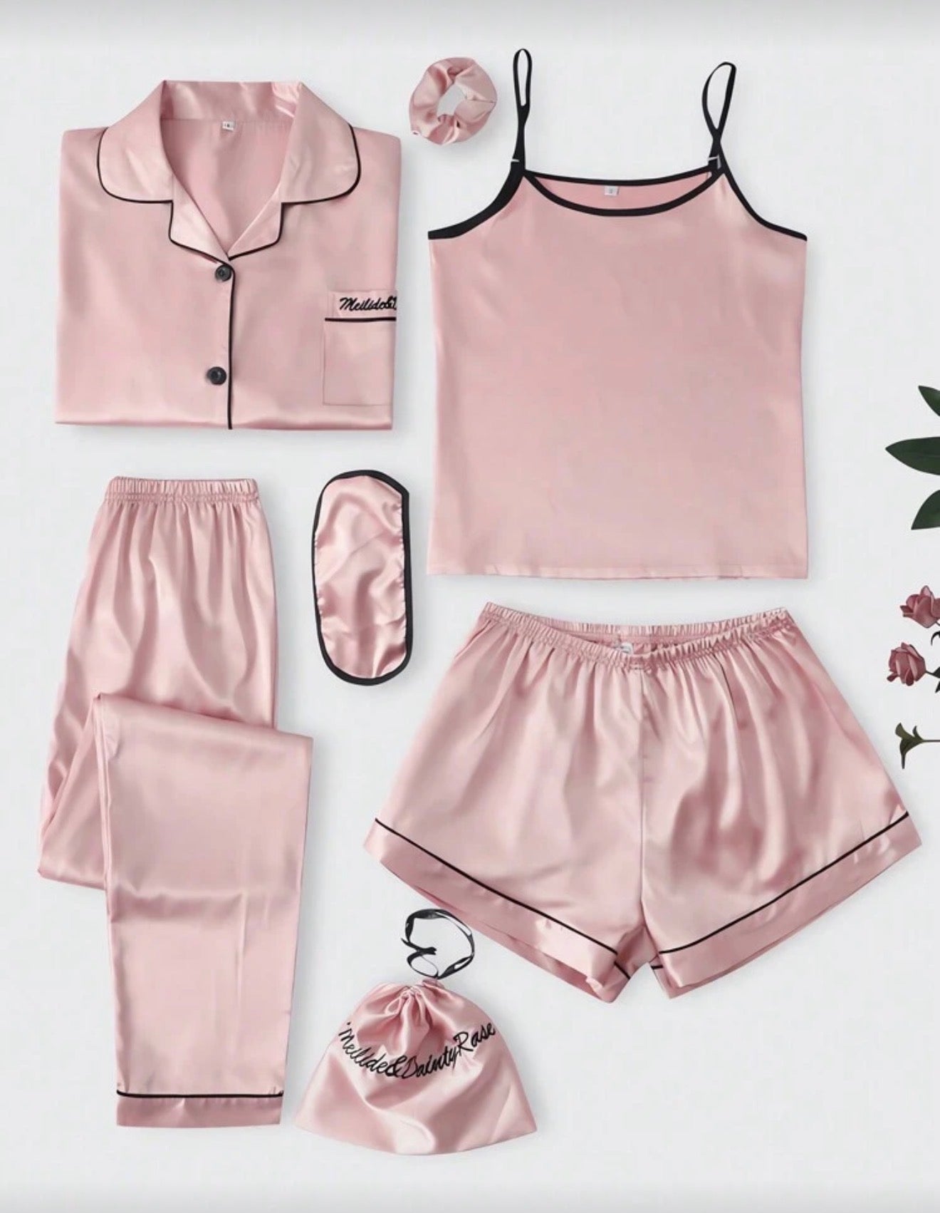 Луксозен дамски сатенен пижамен комплект – 7 части